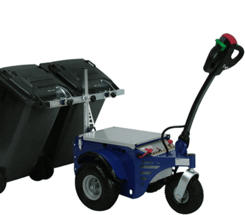 Le tracteur pousseur électrique N4 s’impose comme la référence en matière de traction de conteneurs poubelles. Équipé d’un attelage spécial, il excelle dans le déplacement des containers poubelles à 2 roues. Cet attelage ingénieux permet le transport simultané de deux bacs à 2 roues, avec la possibilité d’ajouter un accessoire pour déplacer deux bacs supplémentaires.